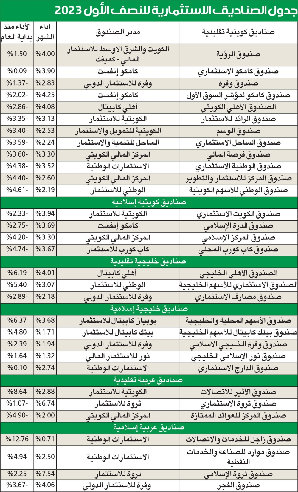 الصناديق الاستثمارية تواصل إطفاء خسائر النصف الأول
