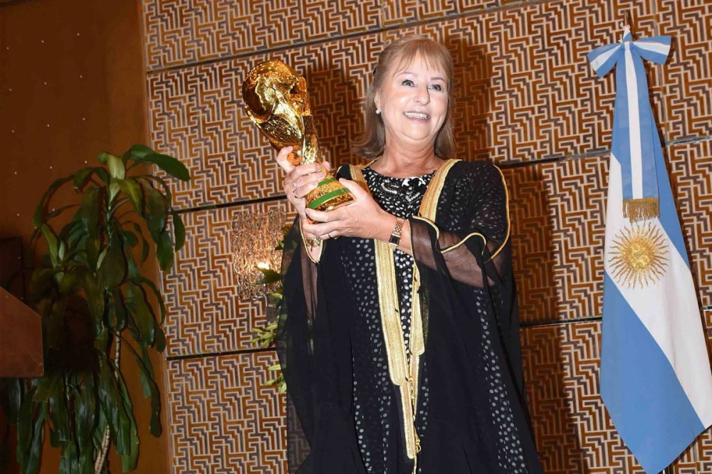 وفي لفتة جميلة خلال الحفل، أهدى السفير القطري لدى البلاد، علي بن عبدالله آل محمود، إلى سفيرة الأرجنتين بشتاً على غرار إهداء اللاعب ميسي بشتاً، ونسخة شبيهة من كأس العالم.