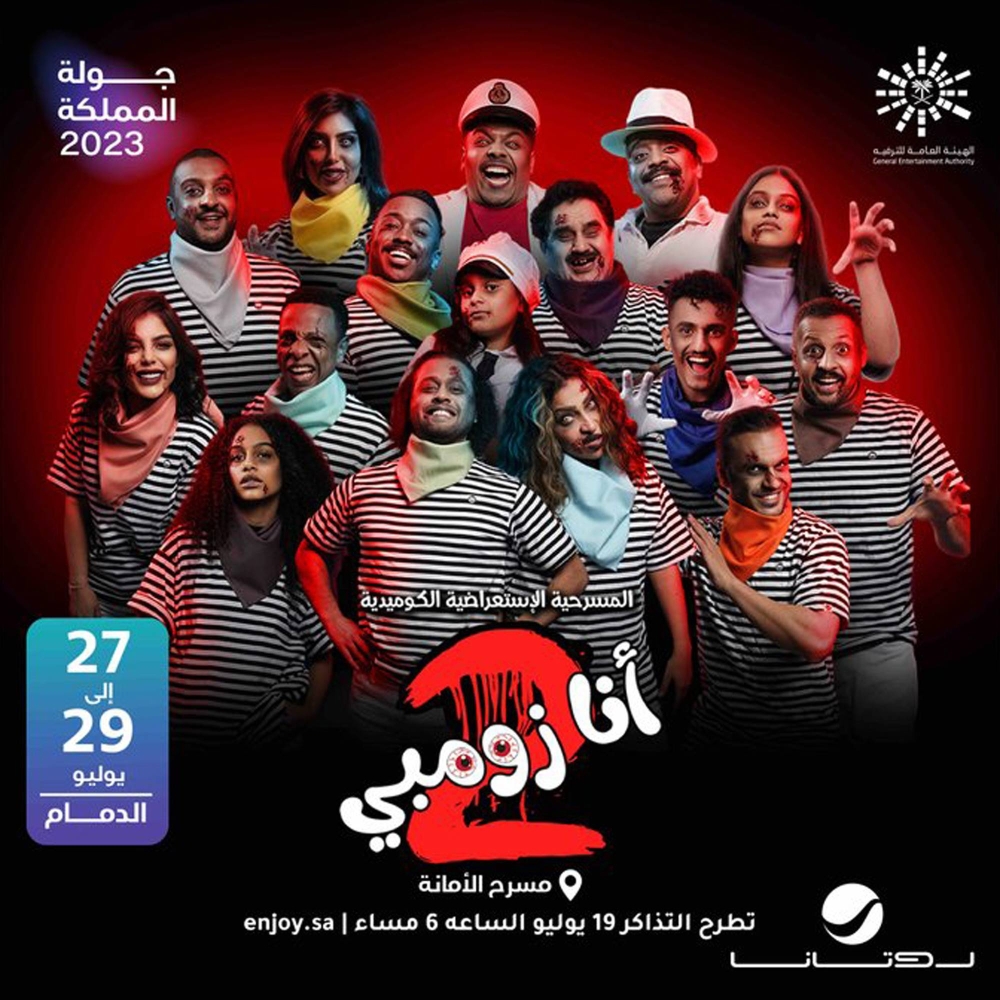 ونشر حساب الهيئة بـ«تويتر» البوستر الدعائي للمسرحية، وأرفقه بتعليق: «مسرحية (أنا زومبي 2) بأحداث ممتعة وأجواء استعراضية مع مجموعة من النجوم، ضمن فعاليات جولة المملكة بالدمام – مسرح الأمانة، من 27 إلى 29 يوليو».