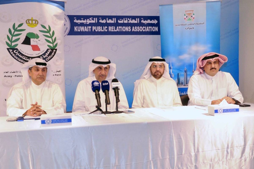 جاء ذلك، خلال مؤتمر صحافي، عقدته الجمعية والمشروع الوطني للمتقاعدين، صباح اليوم، في مقر جمعية العلاقات العامة الكويتية بمنطقة الشامية حول تسخير جميع الإمكانات، ووضعها تحت تصرف الحكومة للاستفادة من خبرات المتقاعدين.