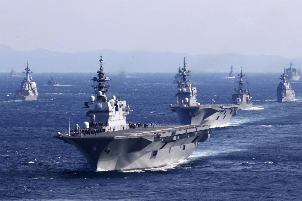 وفيما حلقت 33 طائرة في سماء خليج ساجامي بينها المخصصة لقصف الغواصات، قال رئيس الوزراء فوميو كيشيدا، في كلمة على متن حاملة طائرات الهليكوبتر إيزومو، «يجب أن نكون مستعدين لمنتهكي القواعد ويستخدمون القوة لتقويض سلام وأمن الدول الأخرى».