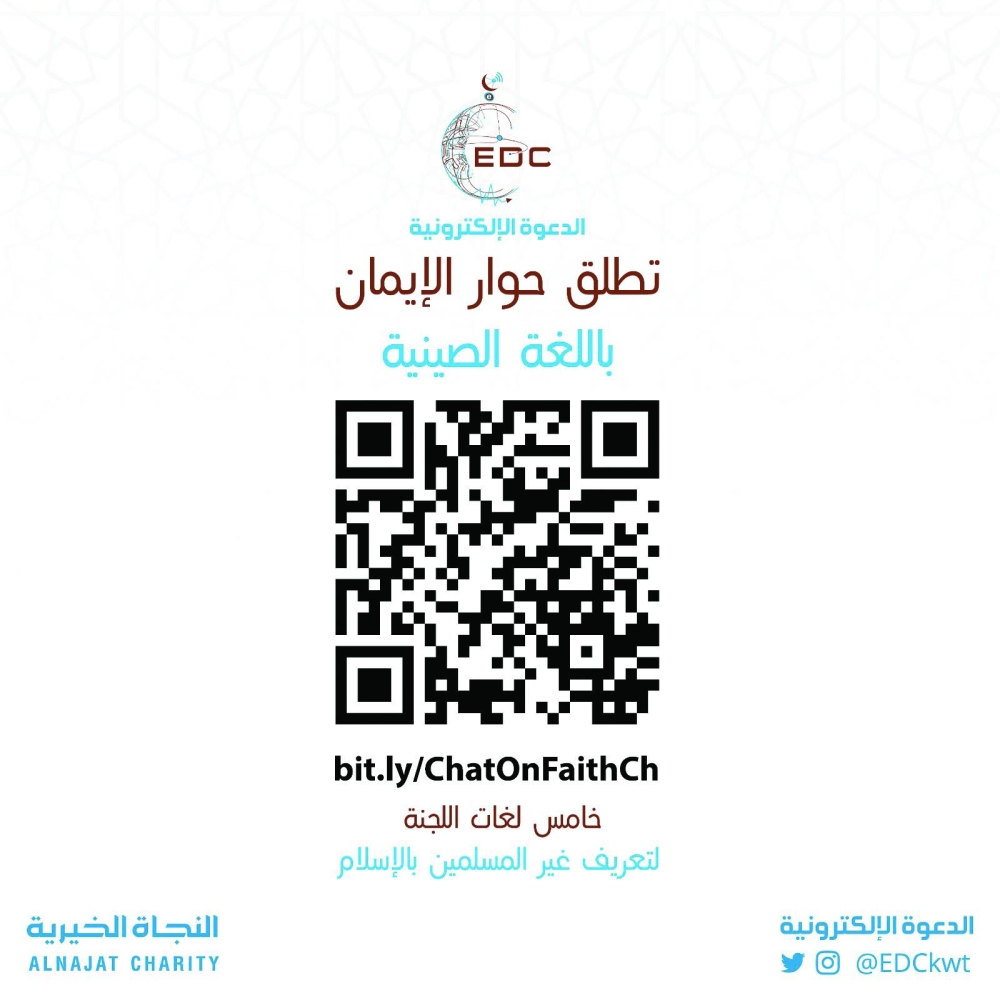 قالت مديرة لجنة الدعوة الإلكترونية التابعة لجمعية النجاة الخيرية، إيمان العلي، إن اللجنة أعلنت انضمام اللغة الصينية لمشروع حوار الإيمان للتعريف بالإسلام، لتسجل بذلك اللغة الخامسة بالمشروع.