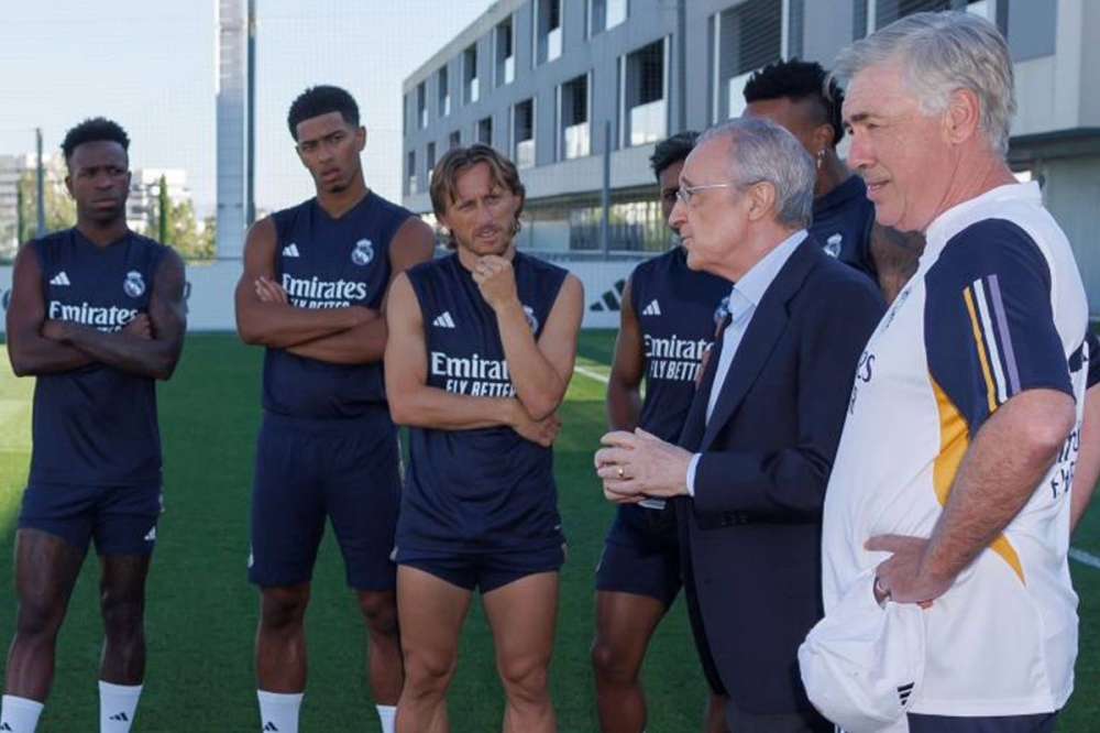 قام رئيس ريال مدريد، فلورنتينو بيريز، بزيارة الفريق الأول قبل الحصة التدريبية اليوم، ليتمنى لهم التوفيق في الموسم الجديد الذي سيتسهله الملكي يوم السبت المقبل بمواجهة أتلتيك بلباو على ملعب سان ماميس في الدوري الإسباني لكرة القدم.