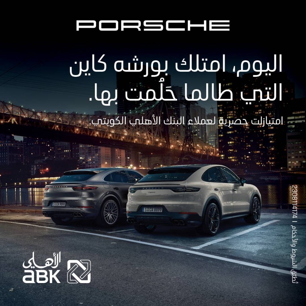 ضمن حرصه المتواصل على توفير العروض المميزة لعملائه، ومواكبة الطلب الكبير على شراء السيارات في السوق الكويتي، أطلق البنك الأهلي الكويتي عرضا يمنح بموجبه خصماً حصرياً بالتعاون مع مركز بورشه الكويت - شركة بهبهاني للسيارات، عند شراء سيارة «كايِن» 2023.