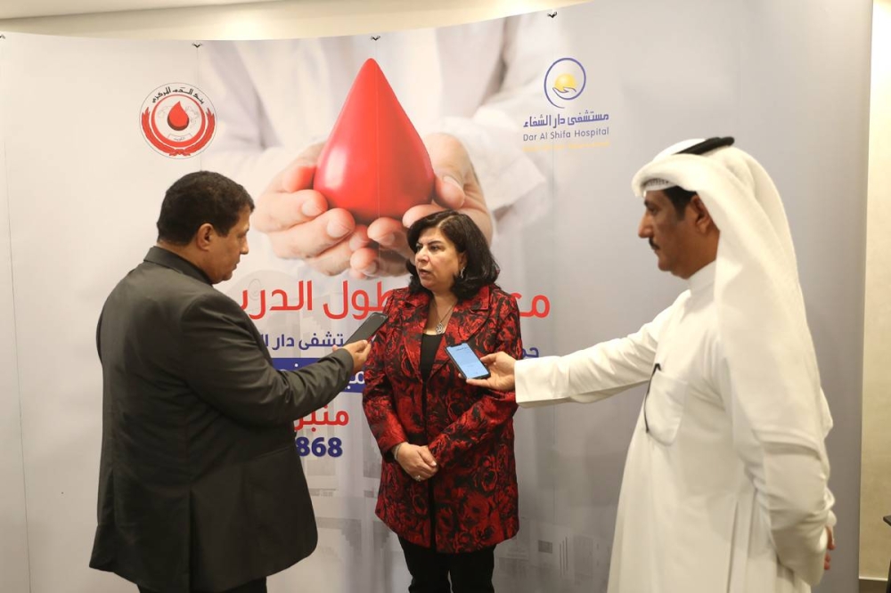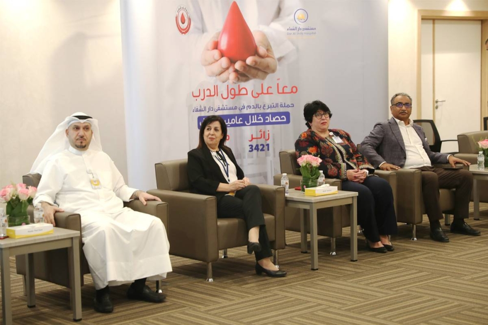 بدورها، لفتت مدير إدارة خدمات نقل الدم بوزارة الصحة، د. ريم الرضوان، إلى تعاون إدارة خدمات نقل الدم بوزارة الصحة في بنك الدم المركزي مع مستشفى دار الشفاء، وكان للمستشفى دور في الخدمة المجتمعية وتشجيعهم للتبرع بالدم منذ 2008، مبينة أن دور إدارة خدمات نقل الدم هو تشجيع حملات التبرع لكل الحملات المعنية بالتبرع الدم وتسهيل كل الإجراءات المعنية بها.