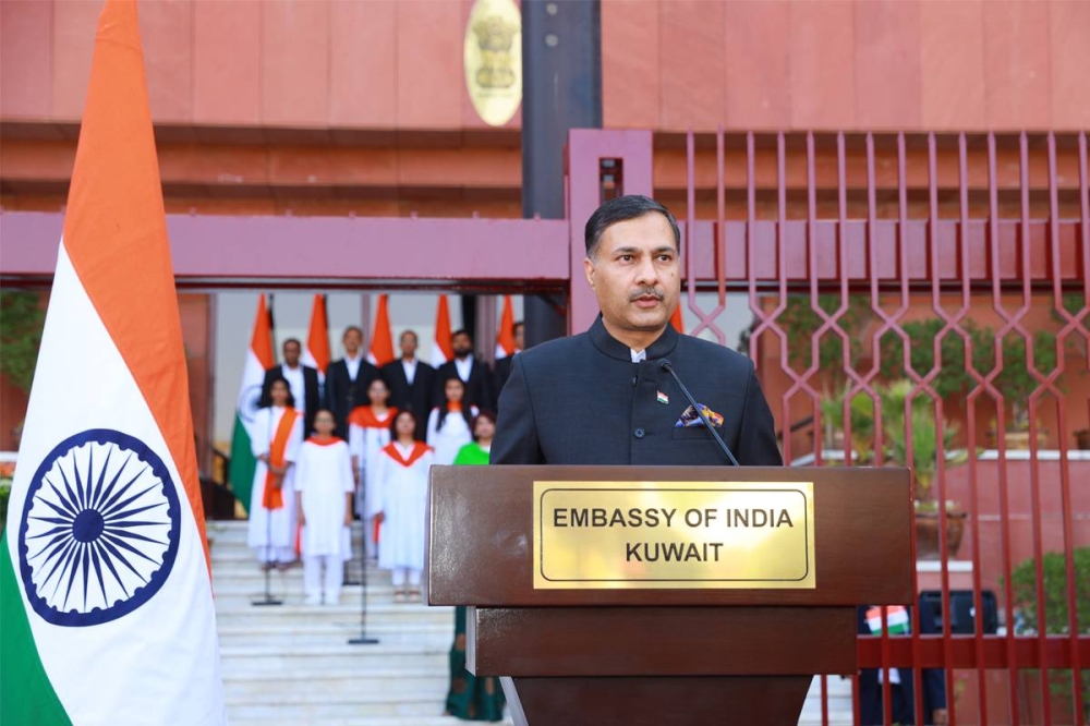 وبعد رفع العلم، وغناء النشيد الوطني الهندي، سلّط سوايكا في كلمته الضوء على جهود السفارة للعمل جنباً إلى جنب مع أبناء الجالية في تعزيز العلاقات بين الهند والكويت، كما سلّط الضوء على الجهود التي تبذلها السفارة في مختلف المجالات، بما في ذلك تعزيز التجارة والاستثمار والثقافة والسياحة، وتوسيع وتعميق التعاون المؤسسي في مختلف المجالات.