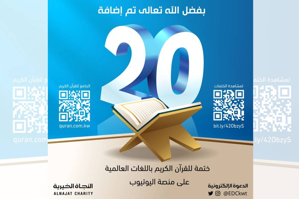 قالت مديرة لجنة الدعوة الإلكترونية التابعة لجمعية النجاة الخيرية إيمان العلي، إن اللجنة واصلت إنجازاتها النوعية بإضافتها 20 ختمة لترجمات معتمدة للقرآن الكريم عبر منصة يوتيوب، حققت مئات الآلاف من المشاهدات.