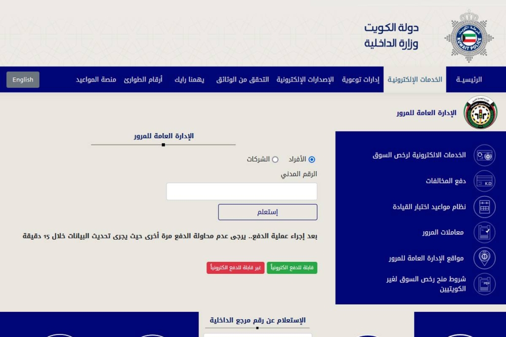 وتابع: يجب ان يكون الدفع عبر المواقع الرسمية مثل موقع وزارة الداخلية اوعن طريق تطبيق سهل، مشيرا الى ان تطبيق سهل اتاح خدمة الاشعارات التي تصل للشخص فور تسجيلها بنظام الحاسب الالي لوزارة الداخلية، ويمكن الاستفادة من هذه الخدمة المجانية المتاحة للجميع.