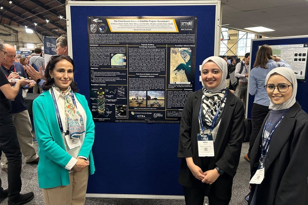 وأضافت أن الفريق قدَّم في المؤتمر ورقة علمية عن المراحل التنفيذية للقمر، استعرض فيها مشروع ذلك القمر منذ بداية التصميم حتى الإطلاق، ثم التقاط وتحليل الإشارات والبيانات، والتي كان منها أول صورة كويتية للكويت من الفضاء.