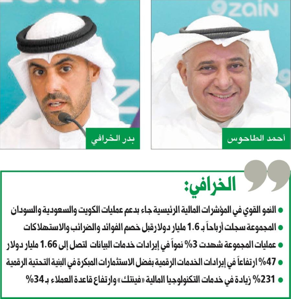 من جانبه، قال نائب رئيس مجلس الإدارة والرئيس التنفيذي في مجموعة «زين» بدر ناصر الخرافي: «يبرز النمو القوي لمؤشراتنا المالية التزامنا المستمر بالحفاظ على مجالات أعمالنا الأساسية بتطوير وتحديث البنية التحتية لشبكاتنا في أسواق الشرق الأوسط وإفريقيا، والتوسع في بناء المنصات الرقمية، إذ سعت زين إلى اكتساب مجالات نمو جديدة تؤمن لها التنوع في توليد التدفقات النقدية».