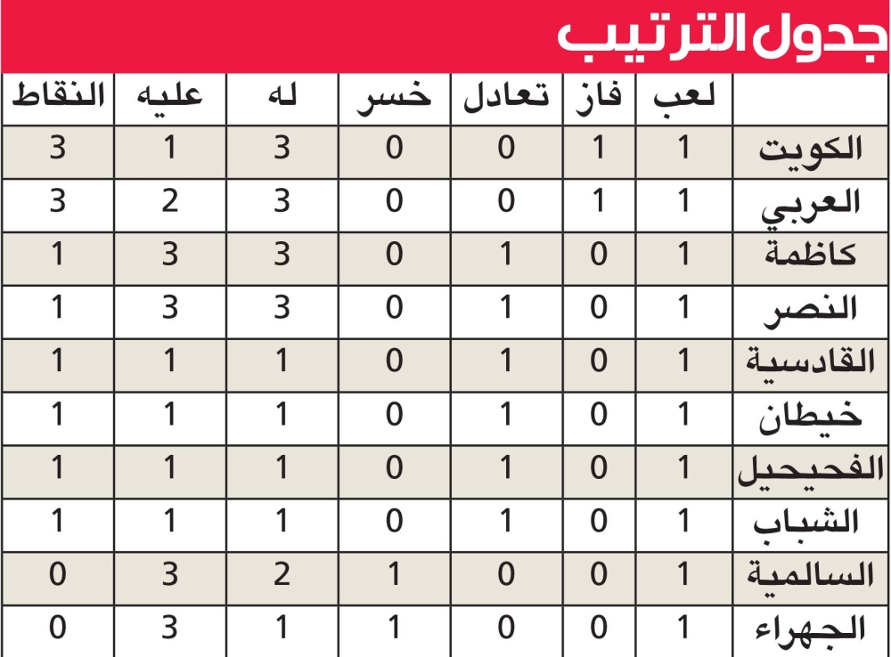 • فرض التعادل نفسه على ثلاث مباريات، تلك التي جمعت النصر مع كاظمة 3 - 3، والقادسية مع خيطان 1 - 1، والفحيحيل مع الشباك بنفس النتيجة.