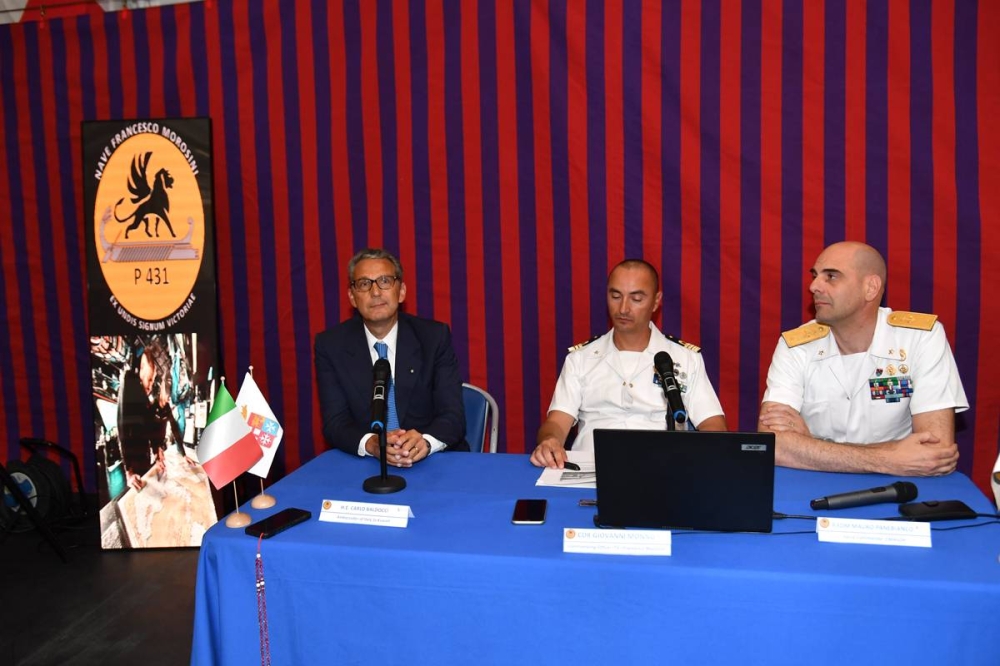 أعرب السفير الإيطالي لدى البلاد كارلو بالدوتشي عن شكره للسلطات الكويتية لترحيبهم الحار بالسفينة الحربية الايطالية الحديثة «فرانشيسكو موروسيني»، في جولتها التي بدأتها منذ نحو 5 أشهر لإجراء تدريبات مناورات تكتيكية مشتركة بين البلدين.