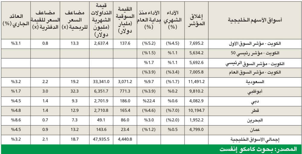 «كامكو إنفست»: أول تراجع لأسواق الخليج منذ 3 أشهر
