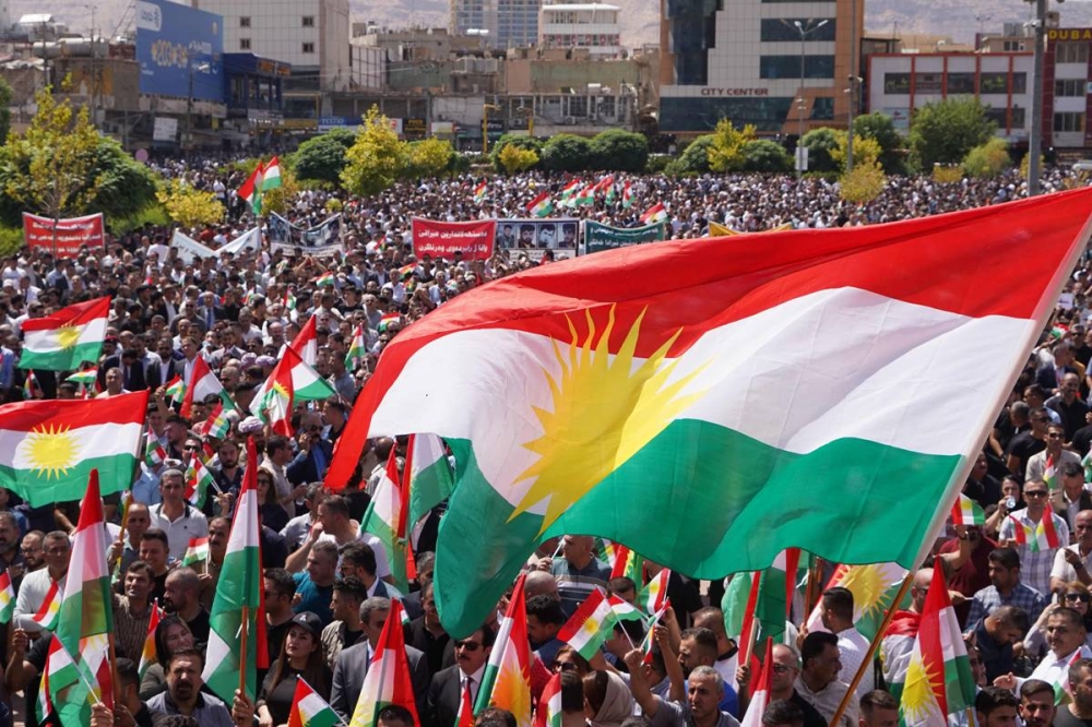 وتجمع آلاف المتظاهرين، وارتدى بعضهم الزي الكردي وسط مدينة دهوك شمال العراق بحسب مصور «فرانس برس»، وحمل معظم المتظاهرين أعلام إقليم كردستان.