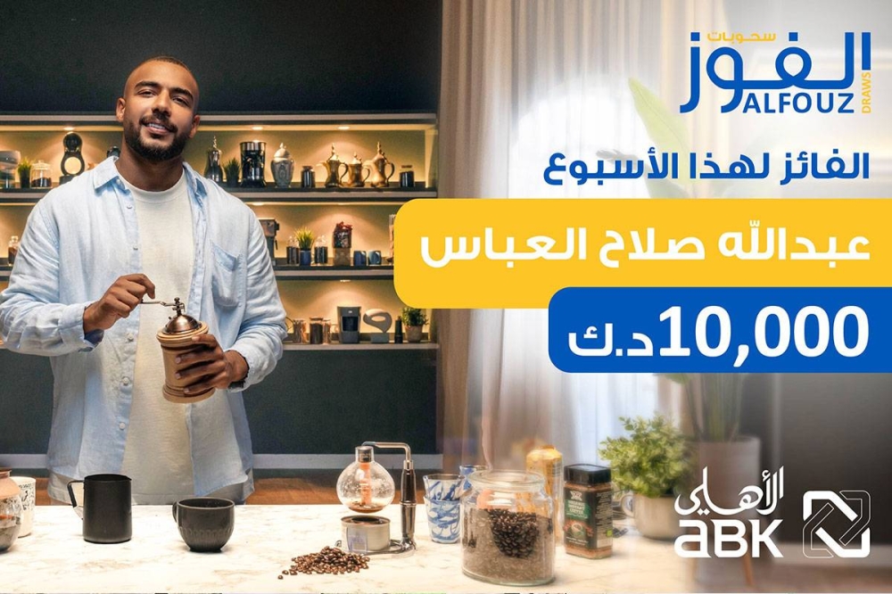 أعلن البنك الأهلي الكويتي فوز عبدالله صلاح العباس في السحب الأسبوعي لحساب الفوز للجوائز، بجائزة نقدية قدرها 10000 دينار، وأقيم السحب تحت إشراف وزارة التجارة والصناعة، وتم الإعلان عن اسم الفائز الاثنين 11 سبتمبر 2023. وأعاد البنك الأهلي الكويتي إطلاق حساب «الفوز» للجوائز، وهو حساب الجوائز الأول من نوعه، والذي يتيح لعملائه فرصة الفوز بجوائز ومكافآت كبرى. وتشمل المميزات الجديدة للحساب إعطاء العملاء فرصا أكبر للفوز، إضافة إلى زيادة عدد الجوائز، بحيث تمت إضافة الجائزة الشهرية بقيمة 20.000 دينار، والجائزة ربع السنوية بقيمة 100.000 دينار، بينما ستستمر السحوبات الأسبوعية بقيمة 10.000 دينار، مع الاستمرار في تنظيم السحب السنوي على جائزة راتب شهري بقيمة 5.000 دينار لمدة 10 سنوات، كما قام البنك بزيادة عدد الفرص للعملاء من 100 دينار لكل فرصة إلى 10 دنانير.