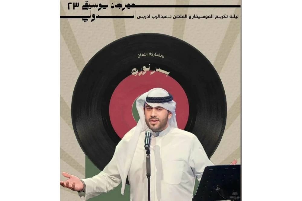 - أستعد لحفل على مسرح الدراما، ضمن فعاليات الدورة الثالثة والعشرين من مهرجان الموسيقى الدولي الذي يقيمه المجلس الوطني للثقافة والفنون والآداب، من 18 إلى 22 سبتمبر، ويتضمن حفلات غنائية موسيقية متنوعة، وفي مساء أولى ليالي المهرجان الغنائية، الاثنين 18 سبتمبر، نحتفي بالشخصية المكرمة لهذه الدورة الفنان الكبير د. عبدالرب إدريس، بحضوره ومشاركتي الغناء مع المطربين مساعد البلوشي وفهد السالم، ويقود الفرقة الموسيقية المايسترو د. أيوب خضر.
