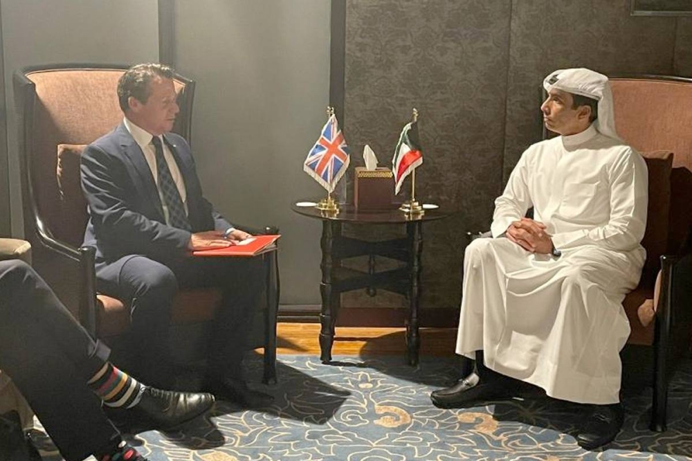 بحث وزير التجارة والصناعة وزير الدولة لشؤون الشباب محمد العيبان مع وزير التجارة الدولية في المملكة المتحدة نايجل هادليستون اليوم الخميس دعم اتفاقية التجارة الحرة بين دول مجلس التعاون الخليجي وبريطانيا.