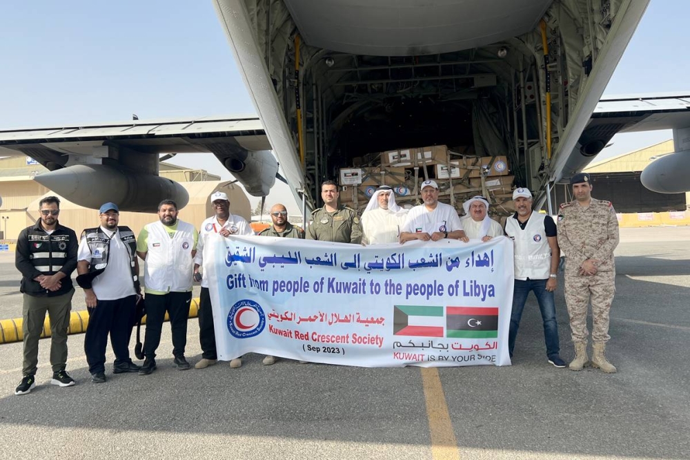 وأضاف المعراج أن الطائرة ستكون تحت إشراف متطوعين من الهلال الأحمر الكويتي لتسليمها للهلال الأحمر الليبي، مؤكداً استمرار الكويت بإرسال المساعدات لتغطية احتياجات الهلال الأحمر الليبي لتخفيف العبء والمعاناة عن المتضررين هناك.