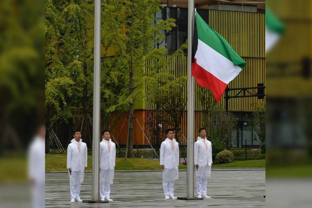 وجاءت مراسم رفع العلم الكويتي في سماء هانغتشو بمشاركة عمدة القرية وعضو اللجنة المنظمة للبطولة وحضور عضو مجلس إدارة اللجنة الأولمبية الكويتية الشيخ جابر ثامر، ومدير بعثة دولة الكويت عضو مجلس الإدارة فاطمة حيات وأمين السر المساعد علي المري، إضافة إلى 40 لاعباً ولاعبة من منتخباتنا المشاركة في الدورة.
