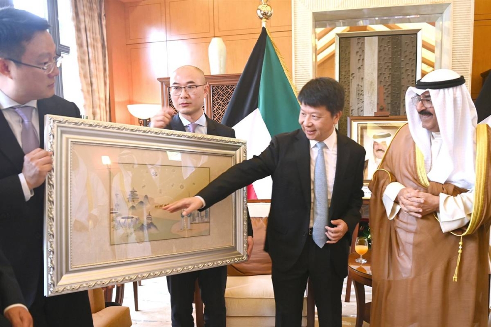 استقبل سمو ولي العهد الشيخ مشعل الأحمد، رئيس مجلس الاشراف في شركة هواوي، غوا بينغ، ورئيس شركة هواوي لمنطقة الشرق الأوسط وآسيا الوسطى، تشانغ يي، ورئيس شركة هواوي تكنولوجيز لمنطقة شمال الخليج، وذلك في مقر إقامة سموه بمدينة هانغتشو الصينية.