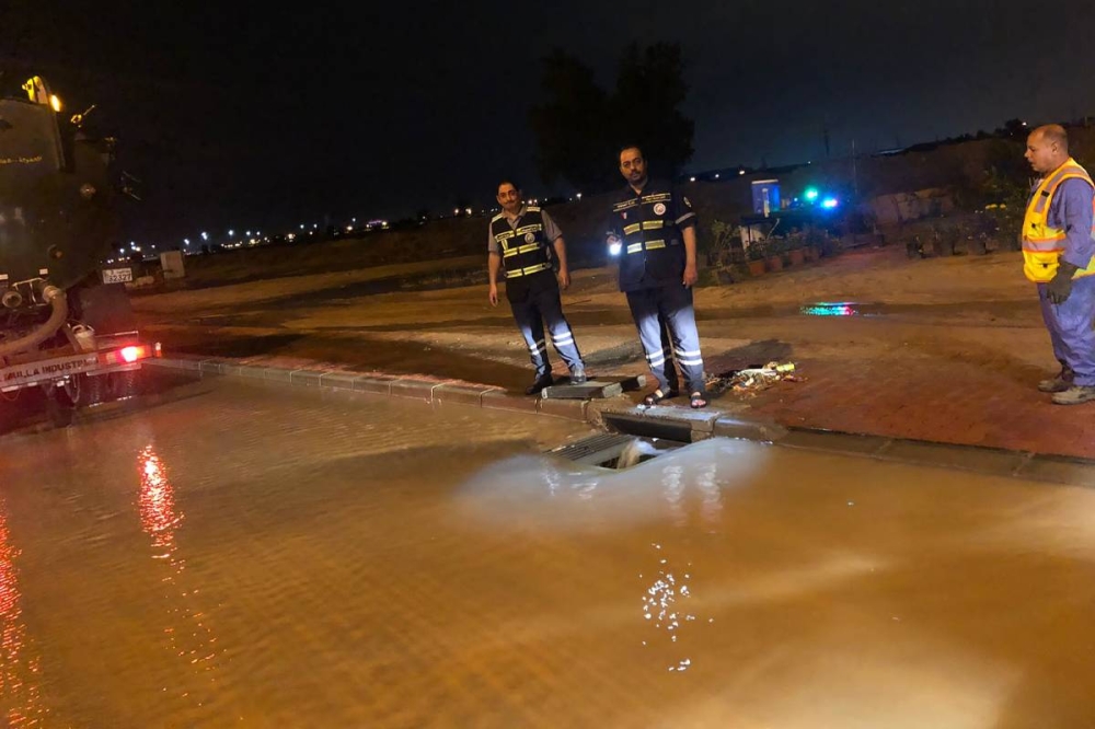 تعمل فرق الطوارئ التابعة لوزارة الأشغال العامة على تصريف مياه الأمطار باستخدام معداتها المختلفة في مناطق عدة تعرضت للغرق.