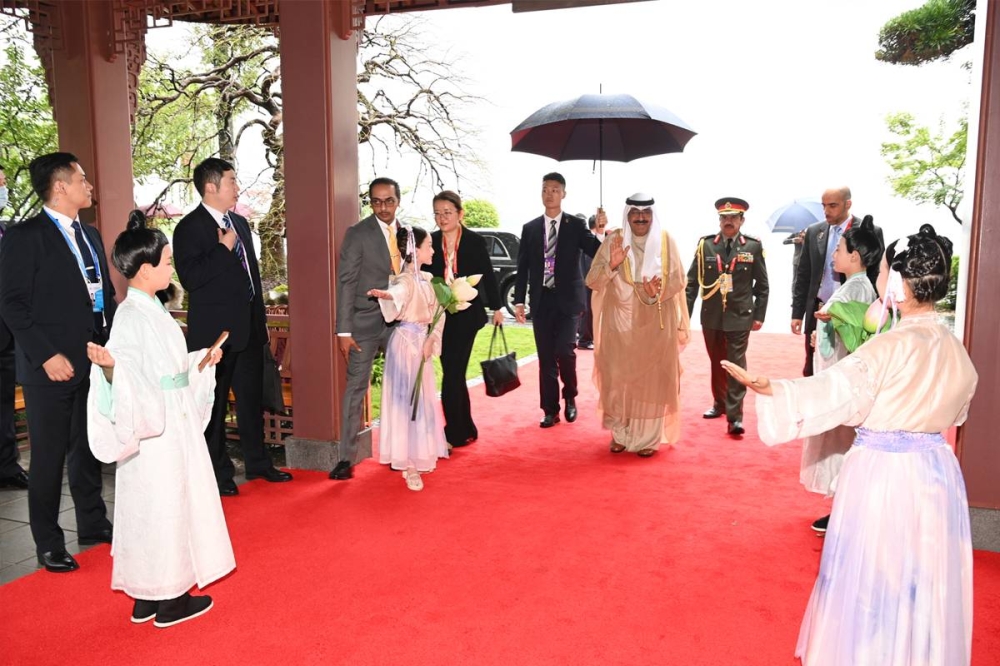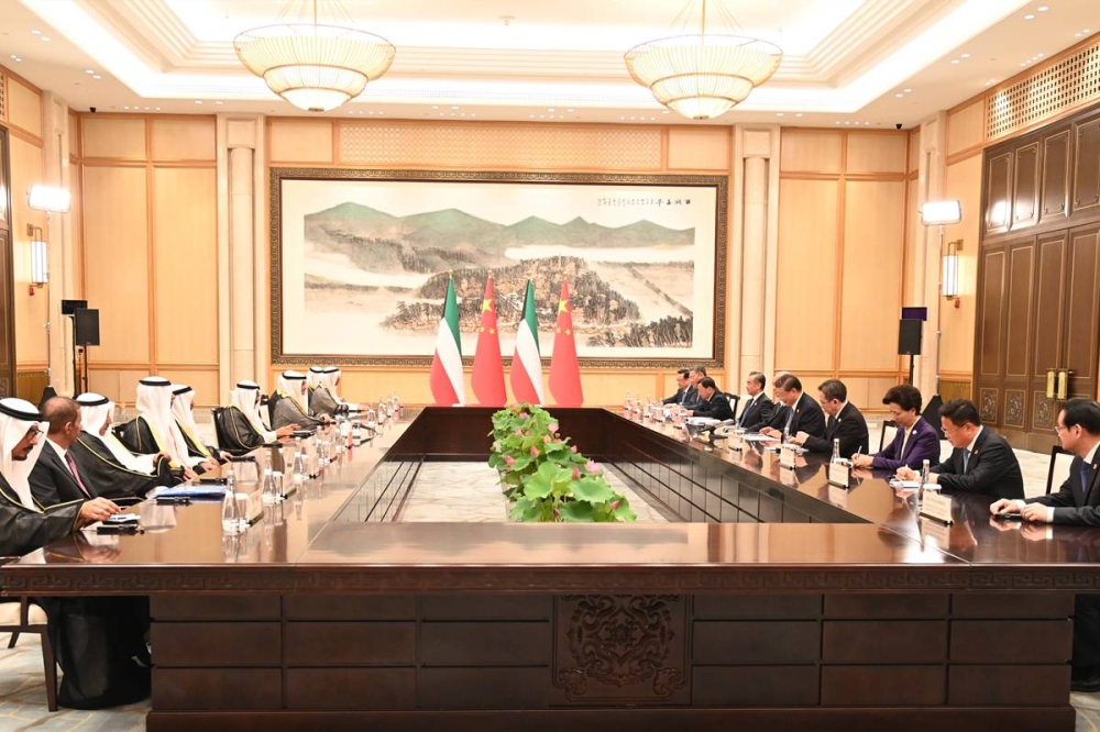 عقد سمو ولي العهد، الشيخ مشعل الأحمد، جلسة مباحثات رسمية مع الرئيس الصيني شي جينبينغ، لتعزيز سبل التقدم والتنمية، والسعي لتوطيد الشراكة الاستراتيجية، سعيا لترسيخ آفاق التعاون بين البلدين الصديقين.