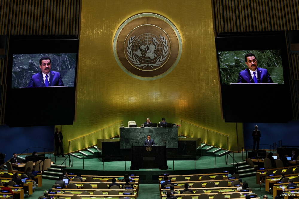 وقال السوداني في كلمة أمام الجمعية العامة للأمم المتحدة في نيويورك إن «العراق يمد يده لجميع دول الجوار لتحقيق رفاهية شعوب المنطقة».