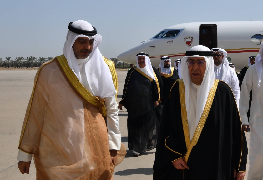 وكان وصل إلى البلاد صباح اليوم الممثل الخاص لملك البحرين، حيث كان في استقباله على أرض المطار وزير شؤون الديوان الأميري الشيخ محمد العبدالله.