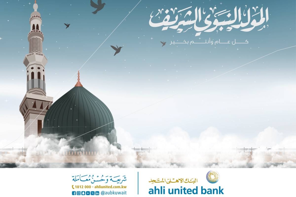 بمناسبة حلول ذكرى المولد النبوي الشريف للسنة الهجرية 1445، يتقدم البنك الأهلي المتحد إلى صاحب السمو أمير البلاد الشيخ نواف الأحمد، وسمو ولي عهده الأمين الشيخ مشعل الأحمد، وإلى الكويت، حكومة وشعباً والمقيمين فيها، بأطيب التهاني والتبريكات، داعين الله -عز وجل- أن يعيده على الأمة الإسلامية باليمن والبركات.