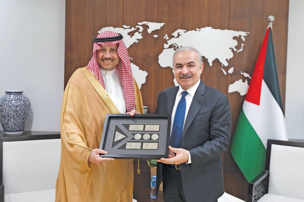في إطار زيارته التاريخية للأراضي المحتلة، بحث السفير السعودي، نايف بن بندر السديري، اليوم، مع رئيس الوزراء الفلسطيني محمد آشتية «تعزيز التعاون والتواصل الحكومي وفي القطاع الخاص».