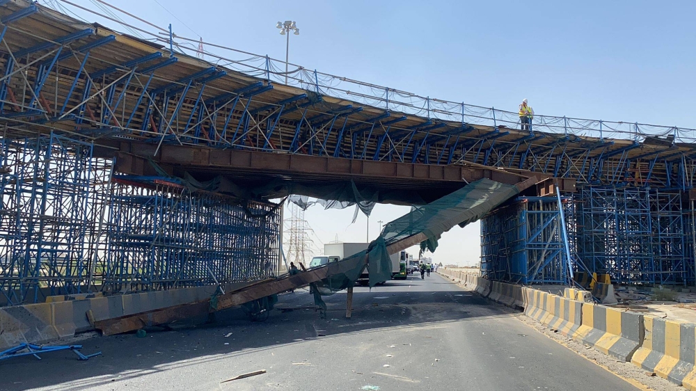 أعلنت وزارة الداخلية عن اتخاذ الإجراءات القانونية اللازمة بحق قائد الشاحنة المتسببة في تساقط أجزاء من جسر «الدائري الخامس» وتعطل حركة السير، بتسجيل قضية بالواقعة في «مخفر الرابية».