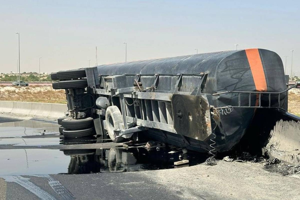 انقلاب صهريج مواد سريعة الاشتعال على الدائري السابع