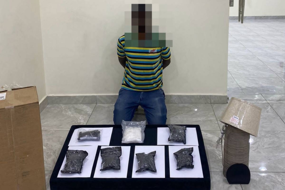 وعلى ضوء ذلك تم التنيسق مع الإدارة العامة للجمارك وبعد إعداد كمين محكم تم ضبط المتهم وهو آسيوي الجنسية أثناء قيامه باستلام الطرد البريدي، وتبيّن أن الطرد يحتوي على مصباح طاولة «أبجورة» ومخبأ بداخلها الشبو بطريقة سرية، وتم إحالته إلى جهة الاختصاص لاتخاذ الاجراءات القانونية اللازمة.