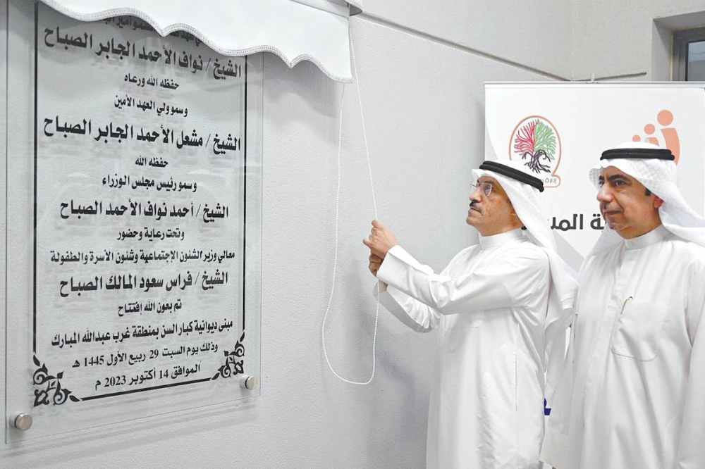 في موضوع آخر، وتحت رعاية الوزير الشيخ فراس المالك، وحضور الوكيل بالإنابة عبدالعزيز ساري، افتتحت الوزارة ديوانية كبار السن في منطقة غرب عبدالله المبارك، وقال ساري إن «الافتتاح يأتي في إطار تنفيذ توجيهات وتعليمات مجلس الوزراء، وبمتابعة حثيثة من الوزير المالك بضرورة تقديم الخدمات كافة لجميع فئات المجتمع من سكان وأهالي وقاطني المناطق الحديثة، ومنها منطقتا صباح الأحمد وغرب عبدالله المبارك وغيرهما من المناطق».