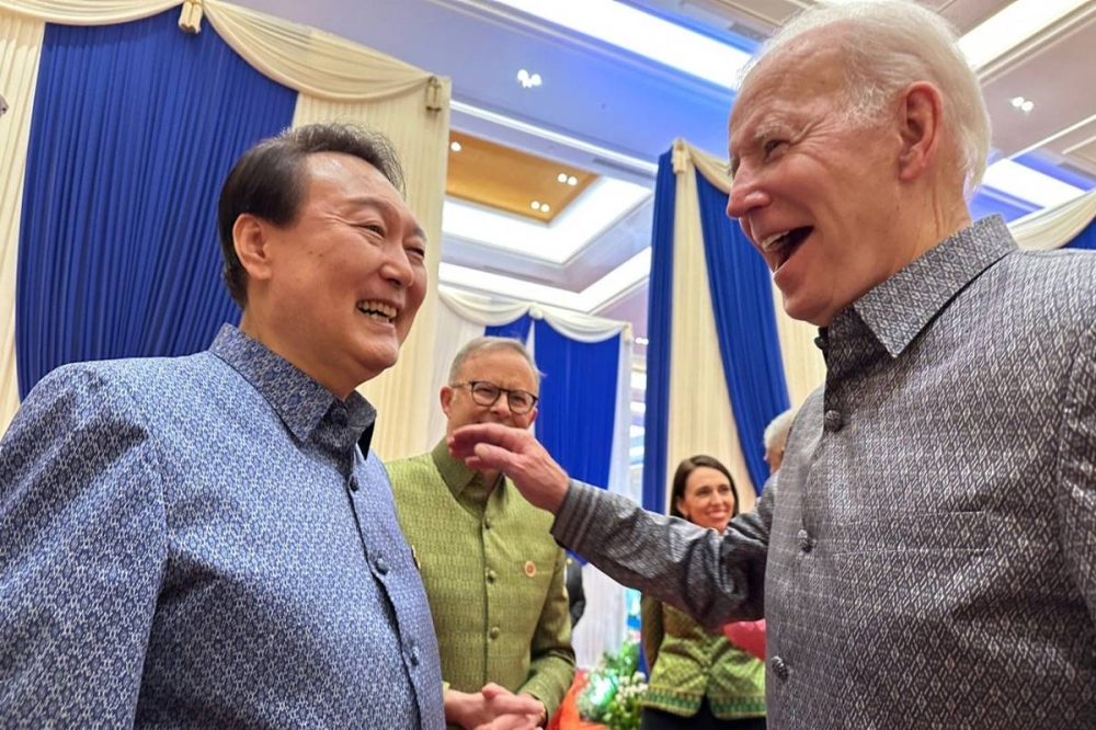 وقبل اجتماع ثلاثي مع رئيس الوزراء الياباني فوميو كيشيدا والرئيس الكوري الجنوبي يون سوك يول، دان الرئيس الأميركي سلوك كوريا الشمالية «الاستفزازي»، كما وصف اليابان وكوريا الجنوبية بـ «الحليفين المهمين للولايات المتحدة».
