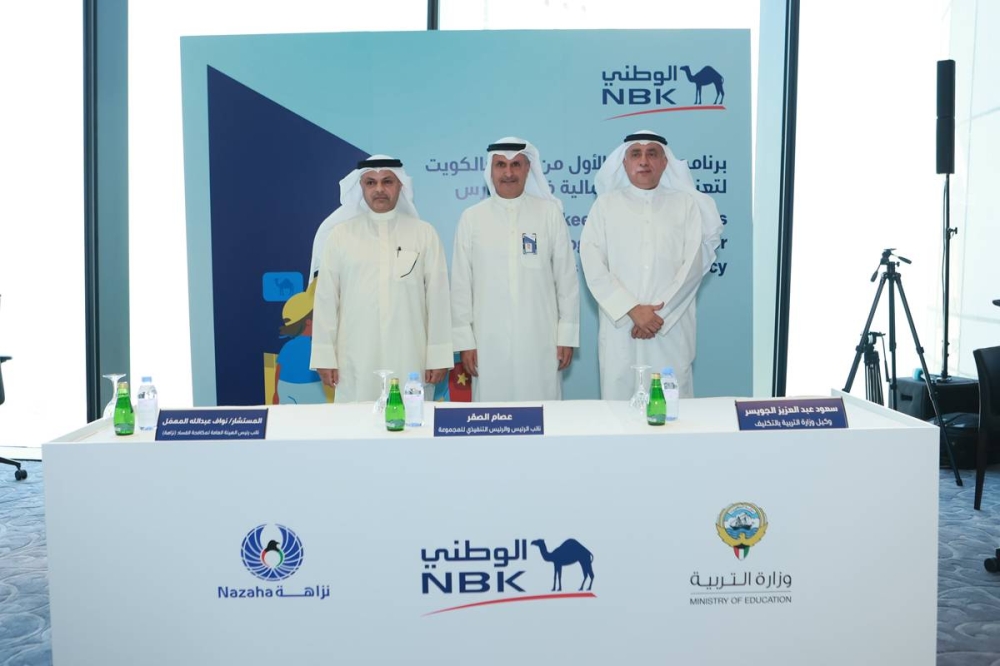 وتم توقيع الاتفاقية في المقر الرئيس للبنك بحضور كل من نائب رئيس مجلس الإدارة والرئيس التنفيذي لمجموعة بنك الكويت الوطني عصام الصقر، ووكيل وزارة التربية بالتكليف سعود الجويسر، ونائب رئيس الهيئة العامة لمكافحة الفساد «نزاهة» المستشار نواف المهمل ومؤسِّسة شركة «كرييتف كونفيدينس» سمية الجاسم.
