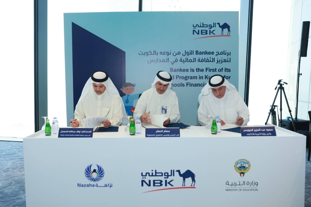 وقع بنك الكويت الوطني مذكرة تفاهم مع وزارة التربية والهيئة العامة لمكافحة الفساد «نزاهة» لتدشين برنامج «Bankee» رسمياً، الذي يهدف إلى زيادة الوعي والثقافة المالية لدى طلاب وطالبات المدارس الحكومية والخاصة بالتعاون مع شركة «كرييتف كونفيدينس».