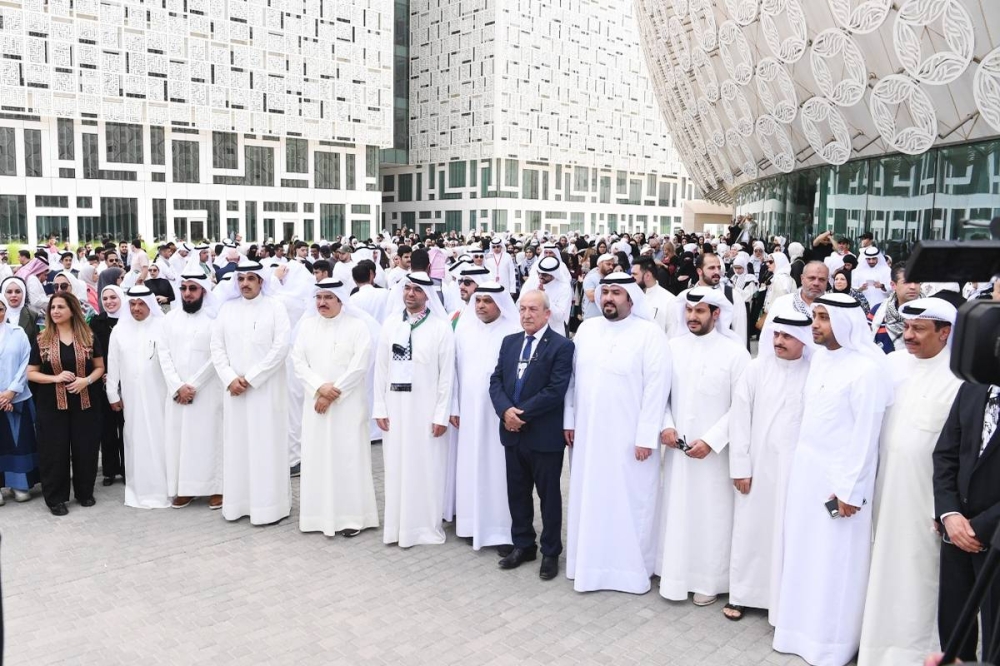 بصمت وهدوء، عبّر المتضامنون في الوقفة الإنسانية الصامتة التي نظمتها إدارة جامعة الكويت، بالتعاون مع جمعية أعضاء هيئة التدريس دعماً للشعب الفلسطيني، عن رفضهم لجرائم الاحتلال الصهيوني.