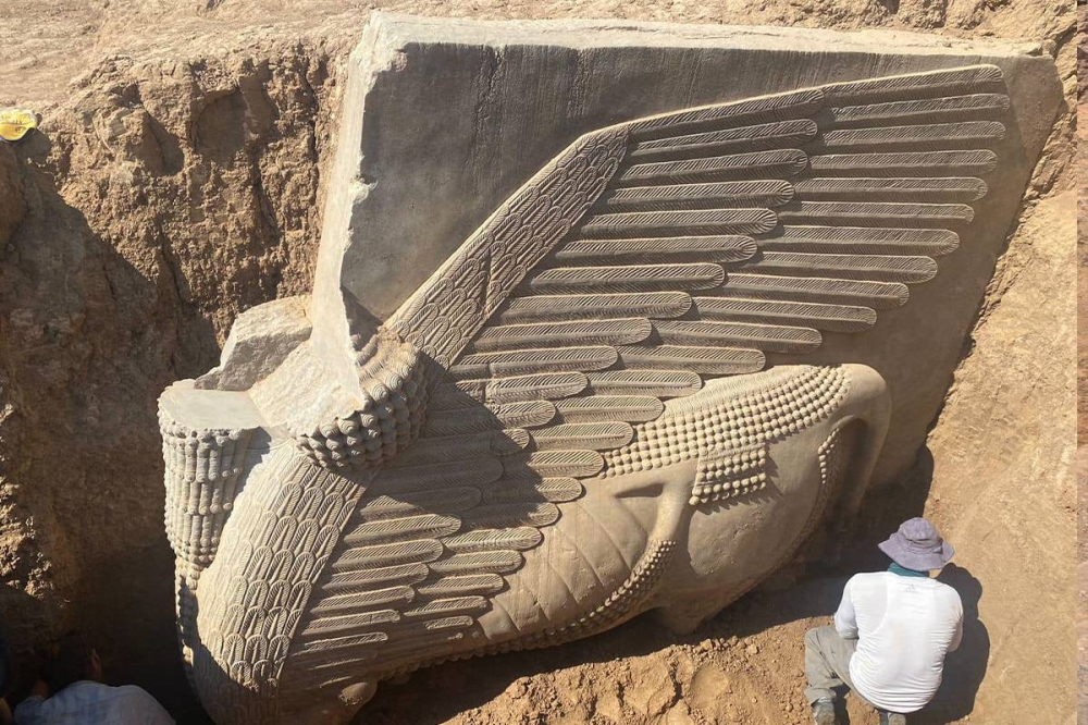 بعثة أثرية تستخرج مجسم «الثور المجنح» بمحافظة نينوى العراقية