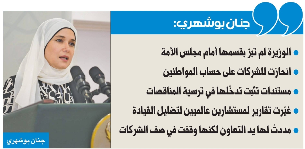 • بوشهري: الوزيرة لم تبر بقسمها أمام مجلس الأمة وانحازت إلى الشركات