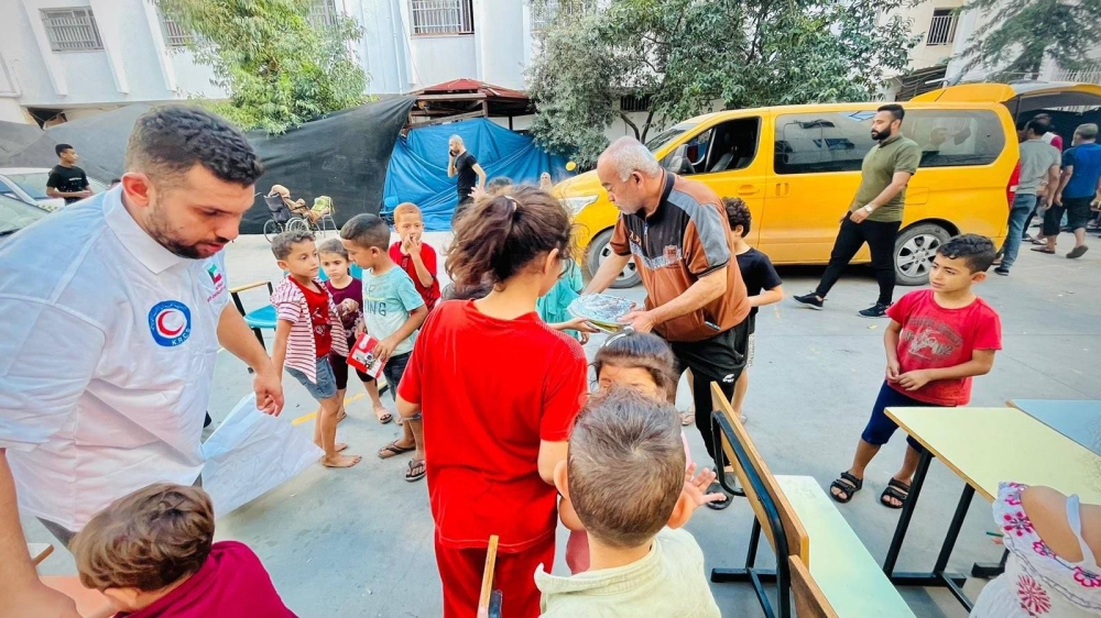 واصلت جمعية الهلال الأحمر الكويتي اليوم الأربعاء ولليوم الـ26 على التوالي تقديم مساعدتها الإنسانية والإغاثية للنازحين الفلسطينيين في عدد من المدارس التي تضم آلاف النازحين الفلسطينيين في قطاع غزة.