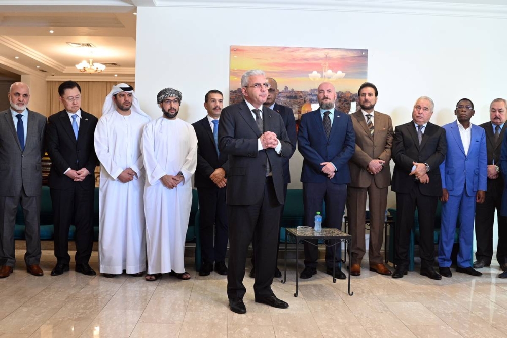 وفي التجمّع الذي استضافه السفير رامي طهبوب في مقر السفارة الفلسطينية، تقدّم عميد السلك الدبلوماسي سفير طاجيكستان زبيدالله زبيدوف بخالص العزاء «إلى أبناء الشعب الفلسطيني لسقوط آلاف الشهداء خلال الاشتباكات والعمليات العسكرية».