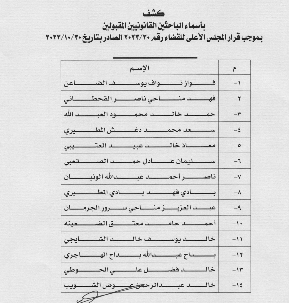 وعلى المقبولين مراجعة قسم شئون رجال القضاة وأعضاء النيابة العامة بإدارة الشئون الإدارية بمجمع الوزارات - الدور الثالث - بلوك 15 اعتباراً من اليوم 2 نوفمبر 2023 لاستكمال اجراءات تعيينهم.