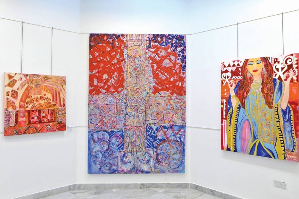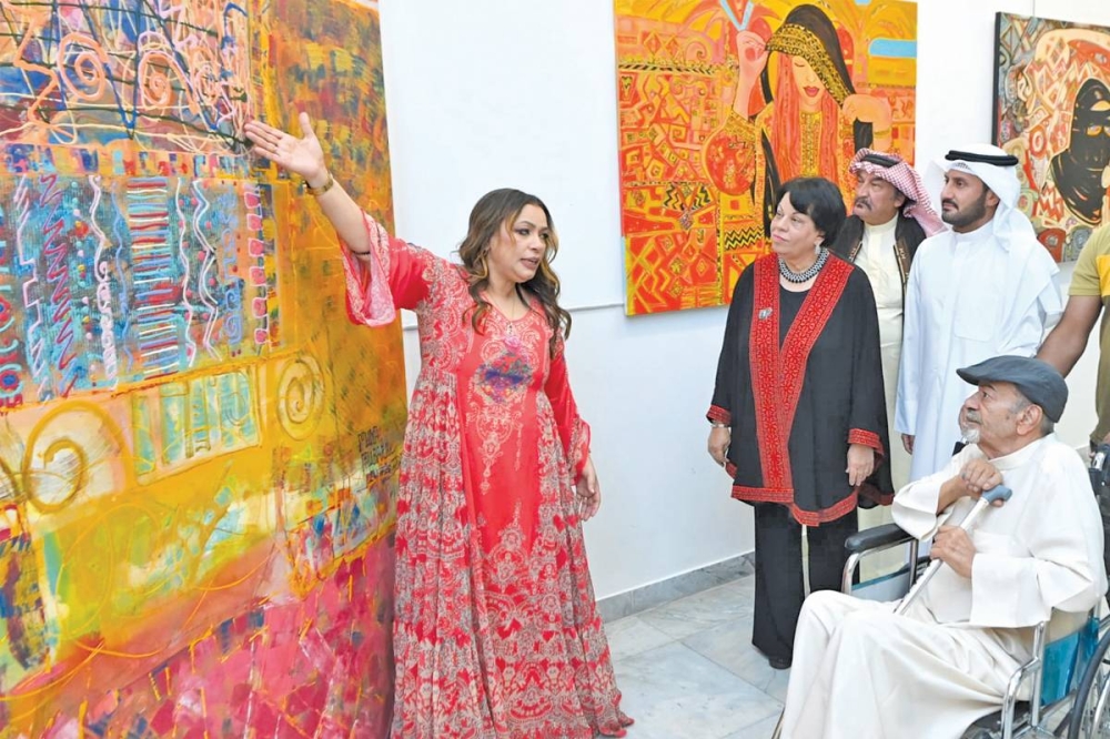 وبدت الألوان زاهية ومتنوعة في أعمال: «حنة موضي»، و«يلوة شيخة»، و«الباب العتيج»، و«فرحة عواشة»، و«العنود» و«قماشة»، و«الجوهرة»، و«الجوري»، تلك التي استلهمتها من ماضي الكويت.