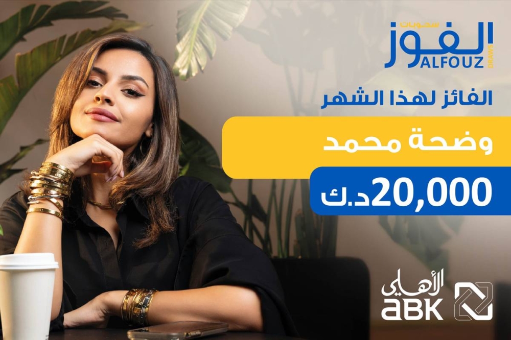 أعلن البنك الأهلي الكويتي عن الرابح لحساب الفوز في السحب الشهري الجديد لشهر أكتوبر وضحة محمد، والتي فازت بمبلغ قدره 20,000 دينار، بإشراف وحضور ممثل وزارة التجارة والصناعة.