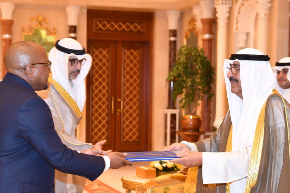 سمو ولي العهد الشيخ مشعل الأحمد يتسلم أوراق اعتماد سفير مملكة أسواتيني
