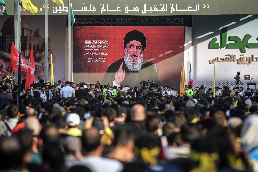 وفي أول كلمة له منذ اندلاع الحرب بين حركة حماس وإسرائيل في السابع من أكتوبر، أطلّ نصرالله عبر شاشة عملاقة أمام عشرات الآلاف من مناصريه في احتفال في الضاحية الجنوبية لبيروت بالتزامن مع تجمّعات في مناطق عدة، تكريماً لقتلى الحزب و«المقاومة» ضد إسرائيل الذين قضوا في التصعيد القائم على جانبي الحدود اللبنانية على خلفية الحرب بين حماس وإسرائيل.