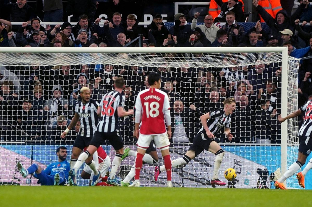 ألحق نيوكاسل يونايتد بضيفه أرسنال أول هزيمة له في الدوري الإنكليزي الممتاز لكرة القدم هذا الموسم بفوزه 1 - صفر بفضل هدف مثير للجدل في الشوط الثاني عبر أنتوني جوردون على ملعب سانت جيمس بارك الذي غمرته الأمطار السبت.