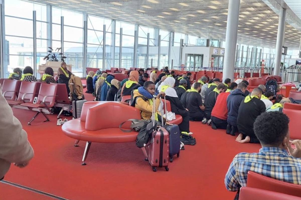 وأظهرت الصور التي جرى تداولها على نطاق واسع عبر وسائل التواصل الاجتماعي الأحد، عشرات المسافرين في صالة المغادرة في مطار شارل ديغول وهم يصلون معاً قبل رحلة إلى الأردن.
