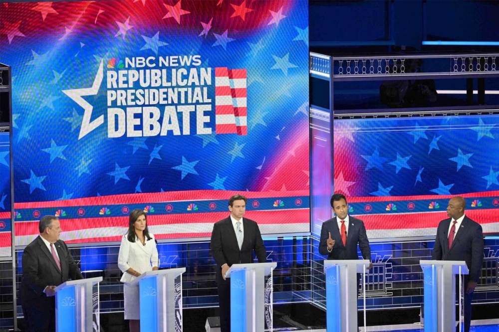 حضرت الحرب الدائرة بين إسرائيل وحركة حماس في غزة، بقوة، خلال المناظرة الثالثة التي خاضها 5 مرشحين لنيل ترشيح الحزب الجمهوري للانتخابات الرئاسية الأميركية المقررة العالم المقبل، وهم السفيرة الأميركية السابقة لدى الأمم المتحدة، نيكي هيلي، وحاكم ولاية فلوريدا، رون ديسانتيس، والحاكم السابق لولاية نيوجيرسي، كريس كريستي، ورجل الأعمال، فيفيك راماسوامي، والسيناتور عن ولاية ساوث كارولينا، تيم سكوت.